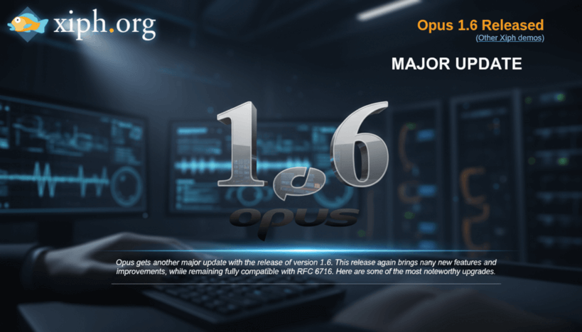 15 декабря 2025 года был официально представлен релиз аудиокодека Opus версии 1.6 — популярного формата с открытым исходным кодом, которая поддерживает широкий спектр проектов и приложений. Opus, разработанный организацией Xiph.Org при участии крупных компаний, таких как Mozilla, Google и Broadcom, уже давно признан эталонным решением для сжатия как голосового, так и музыкального звука с минимальной задержкой и высоким качеством.