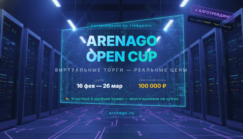 ARENAGO OPEN CUP — новое соревнование, предоставляющее уникальную возможность для трейдеров различного уровня проверить свои навыки в реальных условиях рынка, но без риска потерять собственные средства. Участникам выдается виртуальный капитал в размере одного миллиона рублей, который можно использовать для торговли акциями по текущим рыночным котировкам.