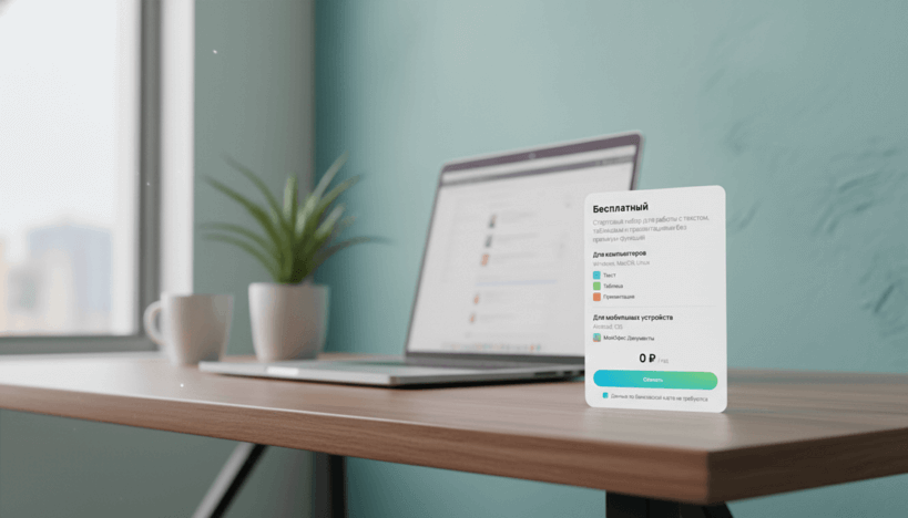 - В бесплатной версии доступны текстовый редактор, редактор таблиц и презентаций, как на настольных, так и на мобильных устройствах.