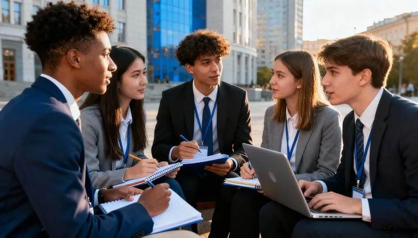 Параллельно школьнику нужно освоить дипломатический этикет и язык. Обращение к другим делегатам всегда ведётся через председателя, используются формулировки вроде «the delegation of» вместо прямого «you». Тон должен быть уважительным даже при выражении несогласия. Эти навыки формируются постепенно через просмотр записей реальных конференций и тренировочные дебаты.